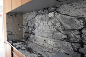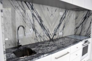 Bancadas e backsplash em Mármore Calacata PT