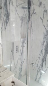 Casa de banho em Mármore Estremoz branco com veios cinza